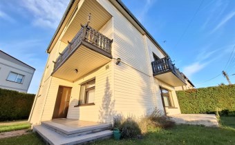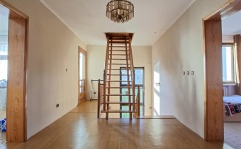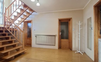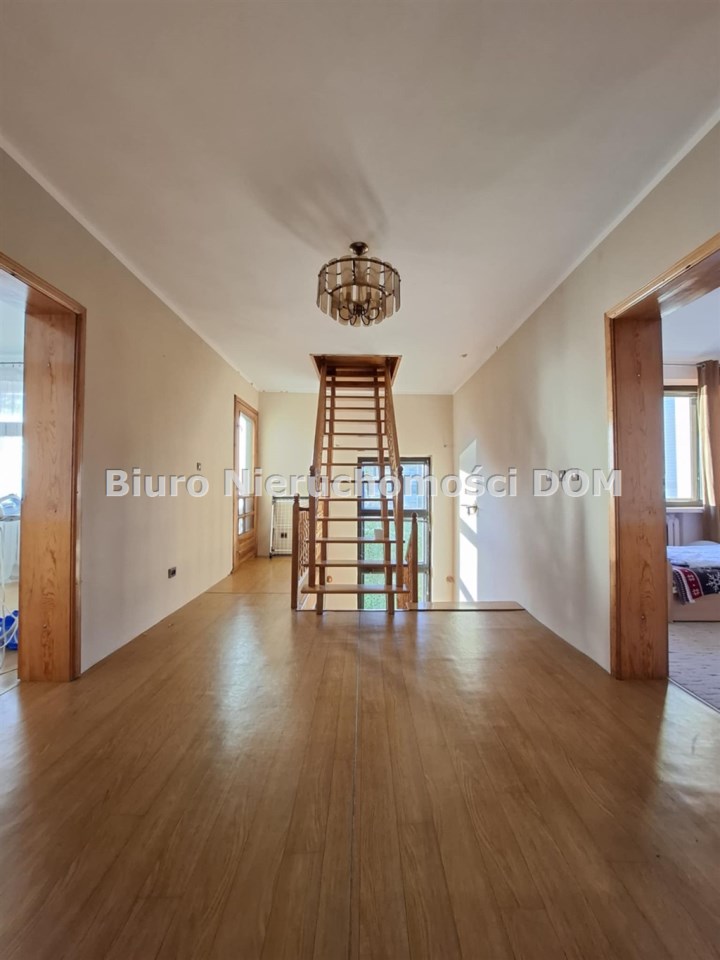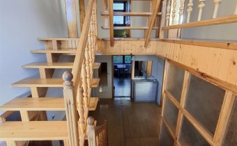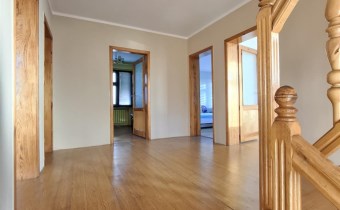 Piętro: hall, 5 pokoi, dwa balkony, łazienka z wanną i prysznicem, wyjście na strych.