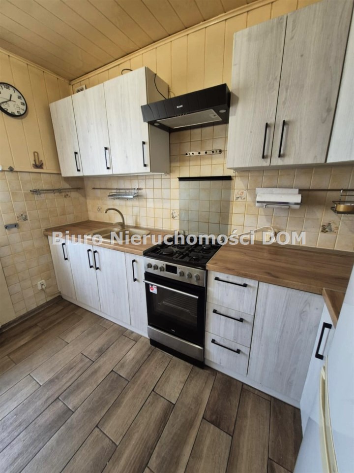 Składa się z trzech ustawnych pokoi, kuchni, łazienki i osobnego WC.