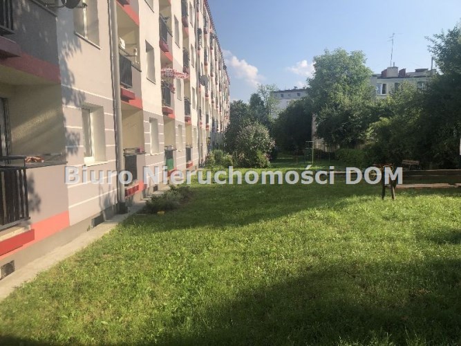Budynek z nową elewacją zewnętrzną, zadbaną i czystą klatką schodową. Od strony balkonu znajduje się ogród oraz zielony, spokojny teren. Przed blokiem parking, pas zieleni, krzewy i drzewa.